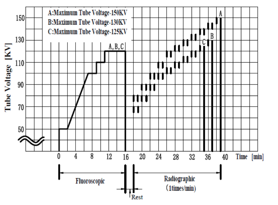 1. Before the initial start-up of the x-ray tubes or after extended idle time (more than 2 weeks), we suggest to make seasoning procedure. And when tubes become unstable, recommend make seasoning procedure according to below seasoning procedure table.