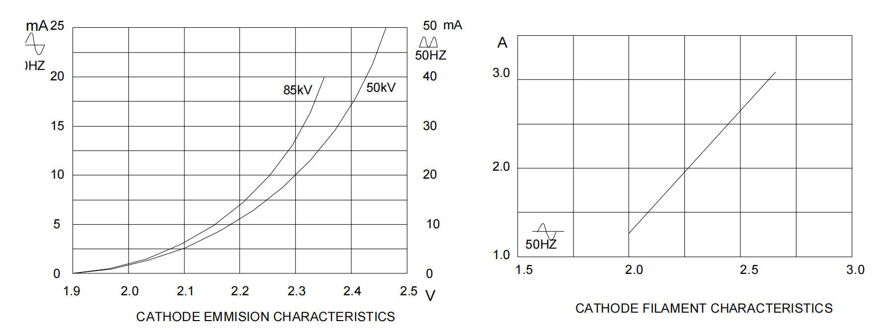 Filament Characteristics Ifmax=2.6A, Uf=3.0±0.5V